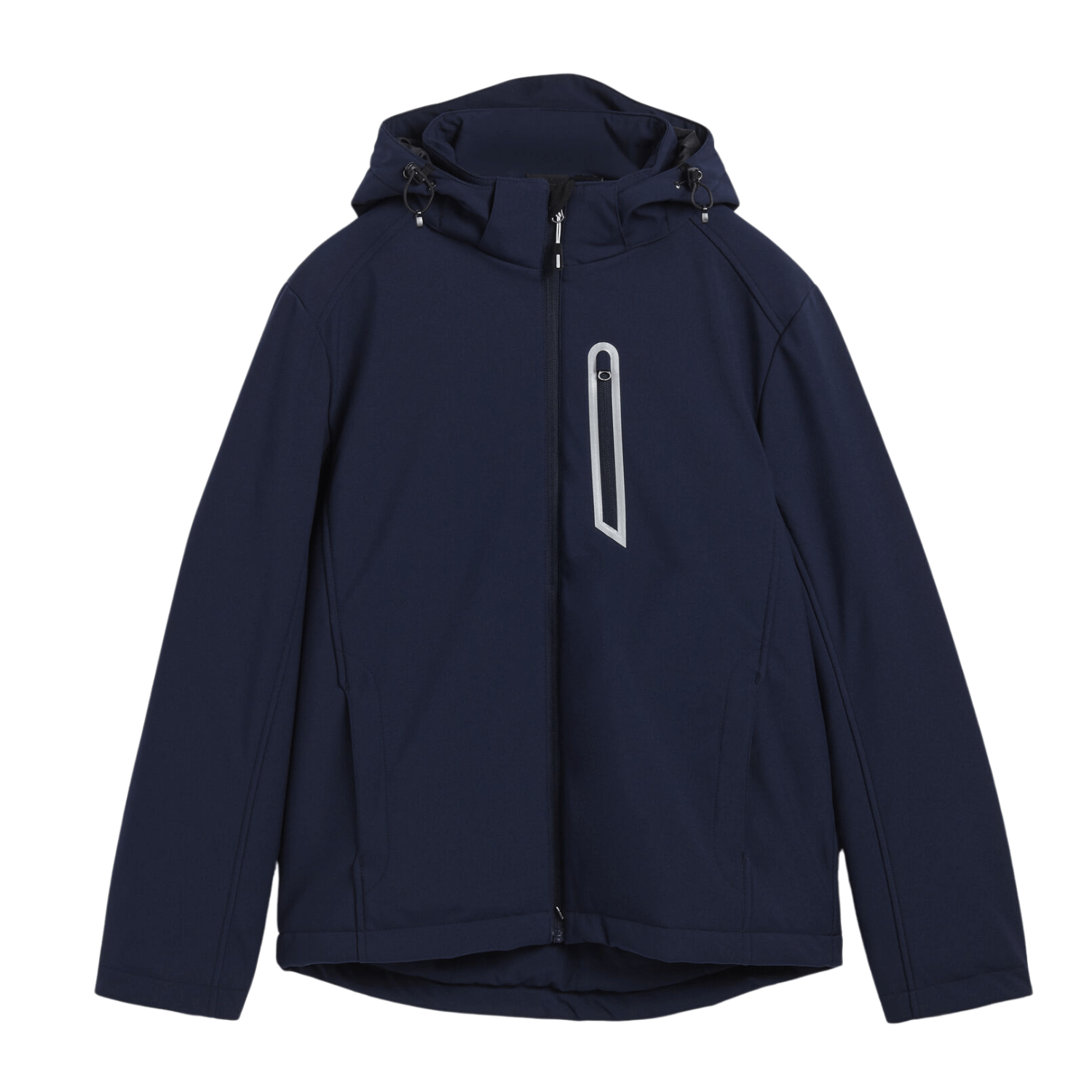 Veste softshell rembourrée. Capuche amovible avec visière façonnée et double réglage. 2 poches latérales et une poche avant avec fermeture Éclair. Double poche intérieure et bas ajustable à l’aide d’un cordon de serrage. Manche avec poignet intérieur isolant. Dos plus long pour un meilleur ajustement. Détails réfléchissants. Fermeture Éclair interne sur le bas permettant de personnaliser le vêtement.